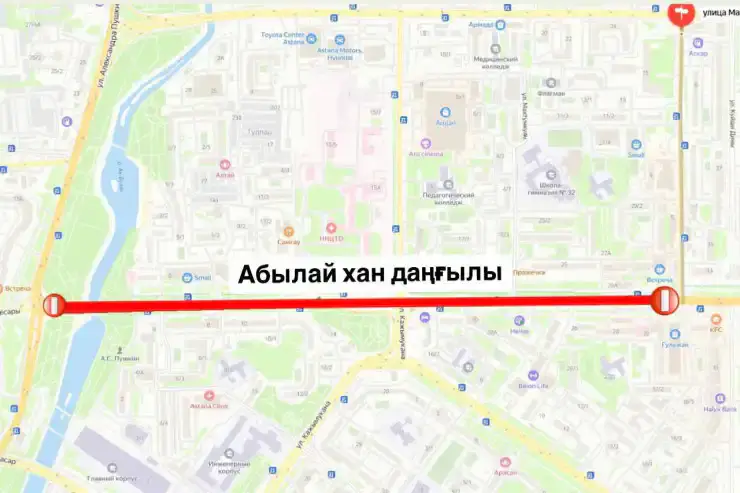 "На проспекте Абылай хана, от улицы А.Пушкина до улицы Манаса, выполнят средний ремонт. Поэтому с 26 апреля по 6 мая текущего года движение на данном участке будет ограничено. Проезд автотранспорта в сторону улицы Манаса будет полностью закрыт, а в направлении улицы А. Пушкина - открыт," - сказано в заявлении.