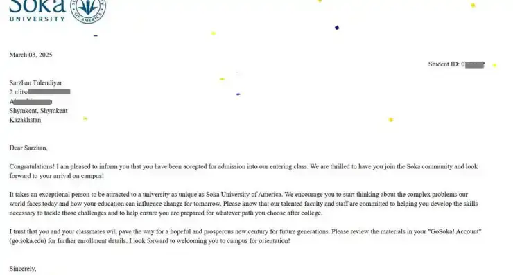 Сейчас выпускник из Шымкента больше всего ориентируется на Уэслианский университет в Коннектикуте, CША. Это топовый вуз с крутым уровнем образования, свободой в учебе и классной поддержкой для студентов из разных слоев. Тем более, они предоставили полное финансирование на учебу, и в том числе на жилье, перелеты и страховку. Благодаря этому казахстанец может спокойно учиться и расти, и его семье не пришлось думать о деньгах.