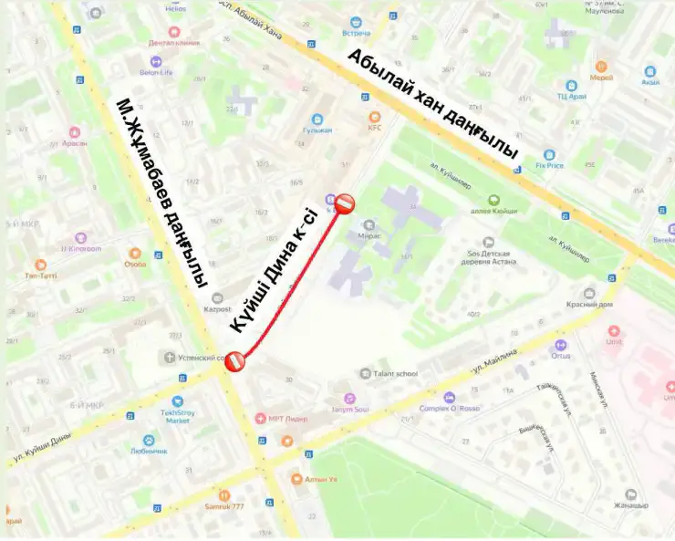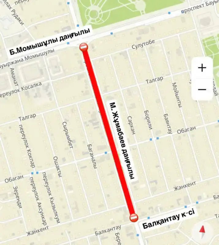 - улица Куршым - от улицы Болашак до улицы Жанаконыс. Ограничение действует с 11 по 18 мая. Движение организовано по одной стороне в обоих направлениях;