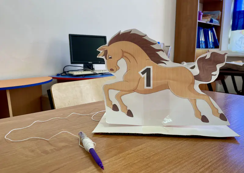 Агзам мечтает стать коневодом, и учительница использует его увлечение для обучения. Она сделала фигурки лошадей, чтобы помочь ему запоминать состав чисел и цифры.