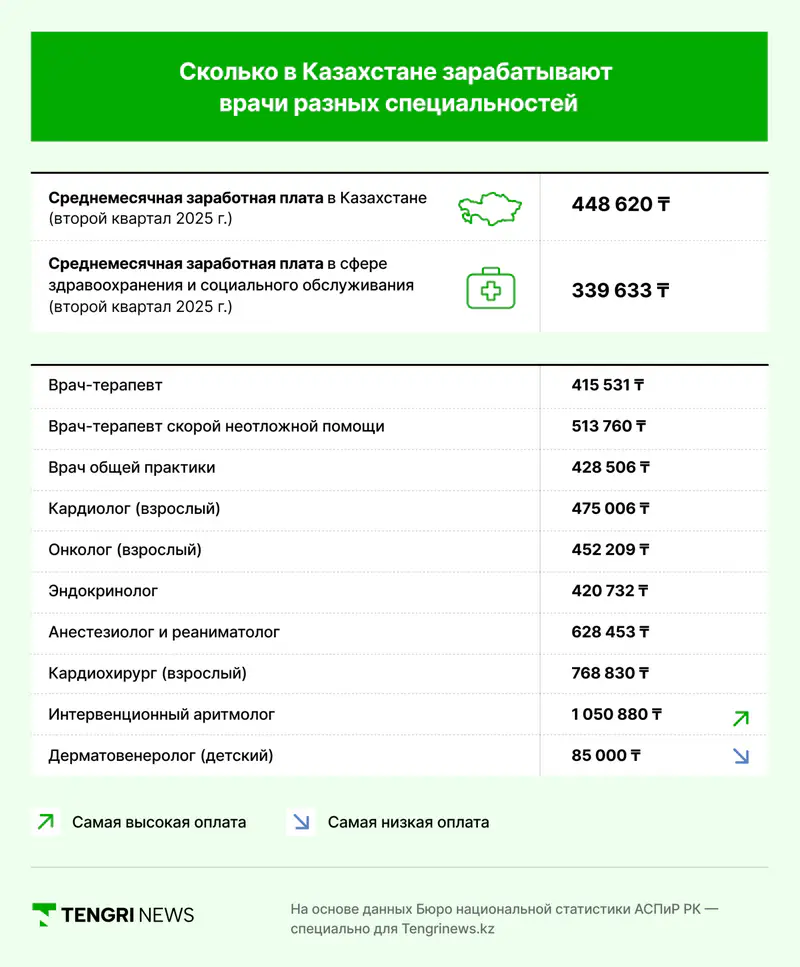 Елжан Биртанов вспоминает, что пять-шесть лет назад в Минздраве ставили задачу к 2025 году повысить зарплату врачей так, чтобы она в 2,5 раза превышала среднюю по стране. Это общемировой уровень. Выходит, сейчас они в среднем могли бы зарабатывать больше миллиона тенге.