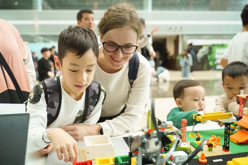 Деловой центр EXPO в минувшие выходные стал местом притяжения не только белых воротничков и IT-стартаперов, но и семей с детьми. Несколько блоков Международного финансового центра заполнили любопытные гости — от непоседливых малышей до школьников. Здесь они смогли получить новые знания через игры. Например, исследовали фундаментальный закон сохранения энергии через спектакль, конструировали сайты, создавали карты в Roblox и даже играли с собакой-роботом.