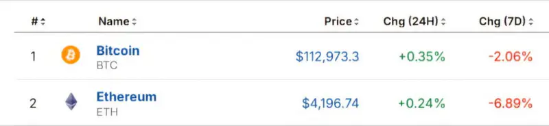Курс Bitcoin (BTC) подорожал на 0,35 процента, а Ethereum (ETH) - на 0,24 процента, достигнув 4 196,74 доллара за одну монету. Это связано с ростом интереса инвесторов к криптовалютам на фоне экономической неопределенности и сигналов ФРС США.