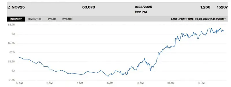 Стоимость ноябрьских фьючерсов на нефть марки WTI увеличилась на 1,27 процента, составив 63,07 доллара за баррель.