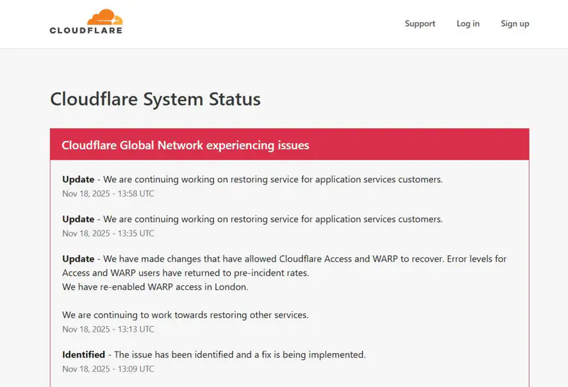 В Cloudflare подтвердили, что продолжают работу над восстановлением системы.