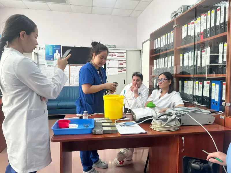 "Обучение по проекту в столичном медицинском университете прошли 332 медицинских работника. В Центре сердца подготовку прошли 40 медсестёр. По BLS обучены 171 медсестра и 52 врача. Мы передали ЭКГ аппараты во все медпункты сёл. В первые недели выявили три случая опасных нарушений ритма, и пациенты своевременно получили помощь", - говорит Алма Айткужинова.