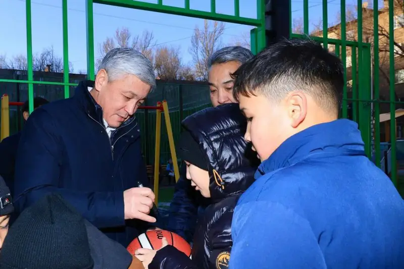 Булекпаев также активно взаимодействовал с молодежью, раздавая автографы детям на спортивной площадке в Караганде.
