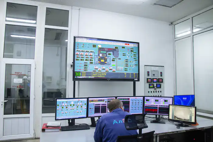 Система управления включает множество рычагов и датчиков, а также современные компьютеры для контроля работы котлов и турбин.