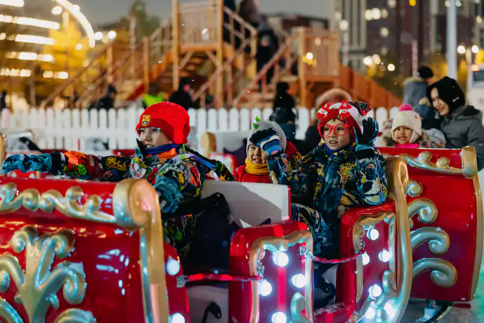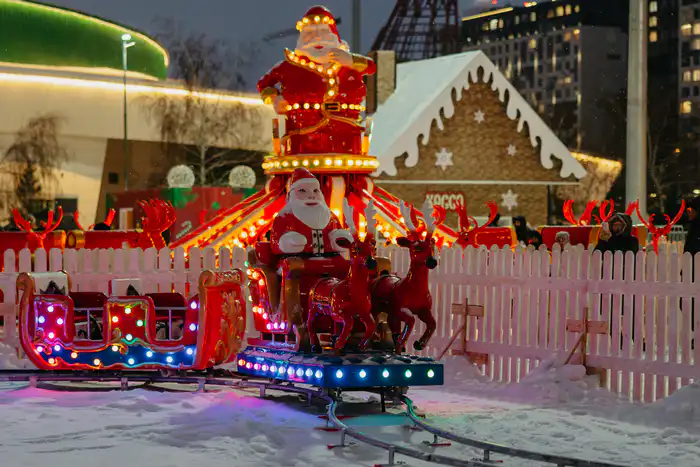 В Wonderland Astana также представлены другие новогодние аттракционы, такие как карусель, поезд с оленями и сани Деда Мороза, а также игровые зоны, выполненные в едином визуальном стиле.