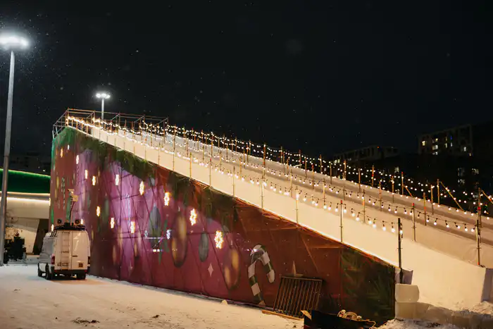 Одной из главных аттракций стала снежная горка высотой 12 метров с длиной ската более 70 метров, которая является одной из крупнейших в городе и подходит как для детей, так и для взрослых.