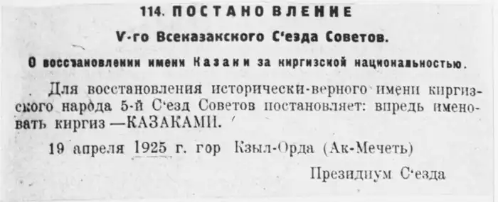 Когда большевики победили своих противников и начали процесс национально-государственного строительства, в Казахстане продолжали использовать термин "киргиз". Первая советская республика с 1920 года называлась Киргизская автономная советская социалистическая республика.