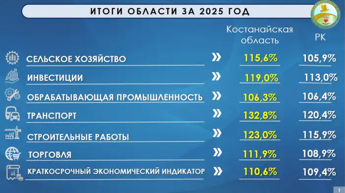 Экономика Костанайской области по итогам 2025 года вырастет как минимум на 8 процентов, что превышает среднереспубликанский показатель. Об этом сообщил аким области Кумар Аксакалов на совещании, посвященном итогам социально-экономического развития региона.