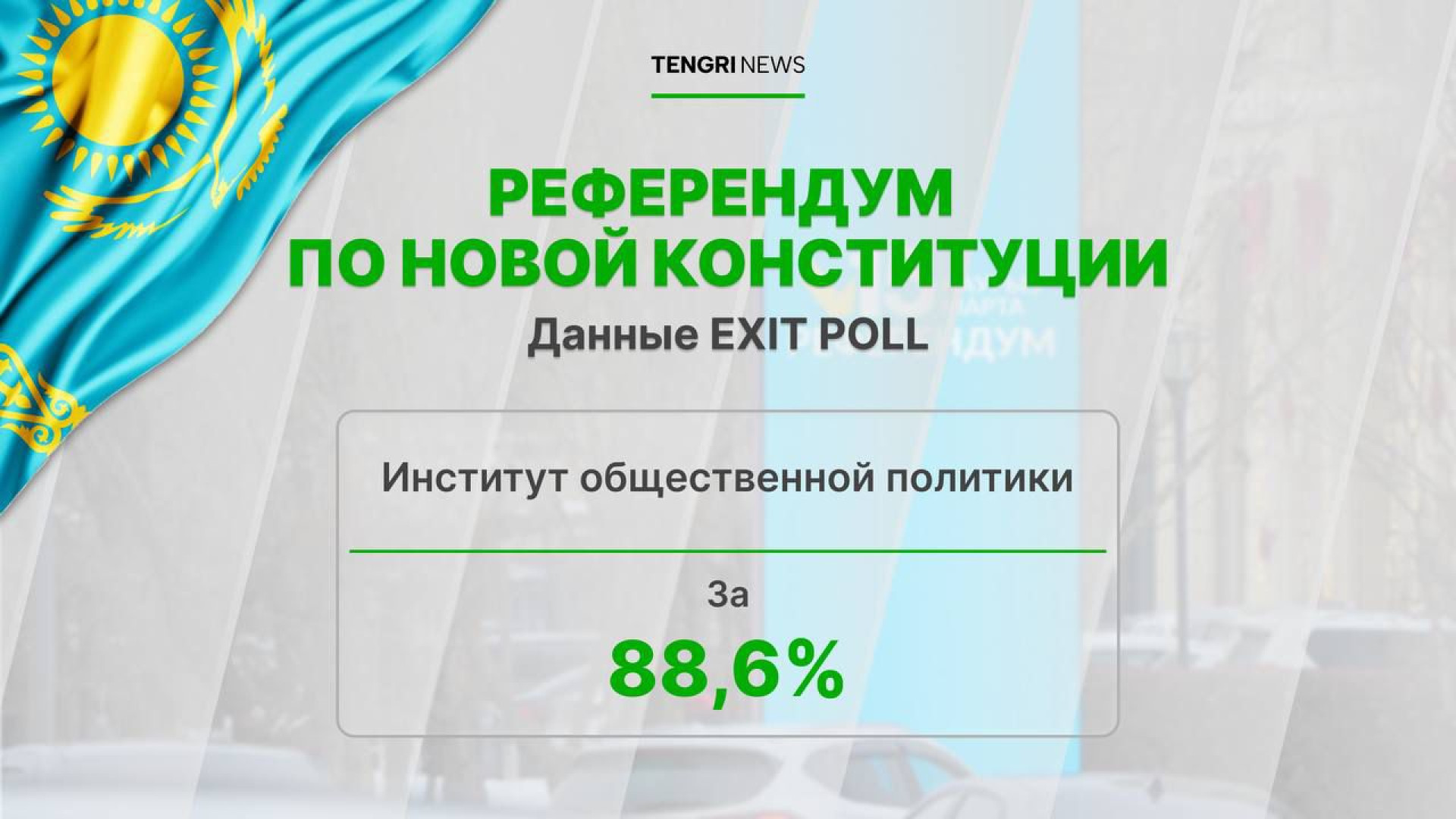 Экзитпол Института общественной политики показал, что новую Конституцию поддержали 88,6 процента участников опроса (24 тысячи человек), с явкой 72,1 процента.