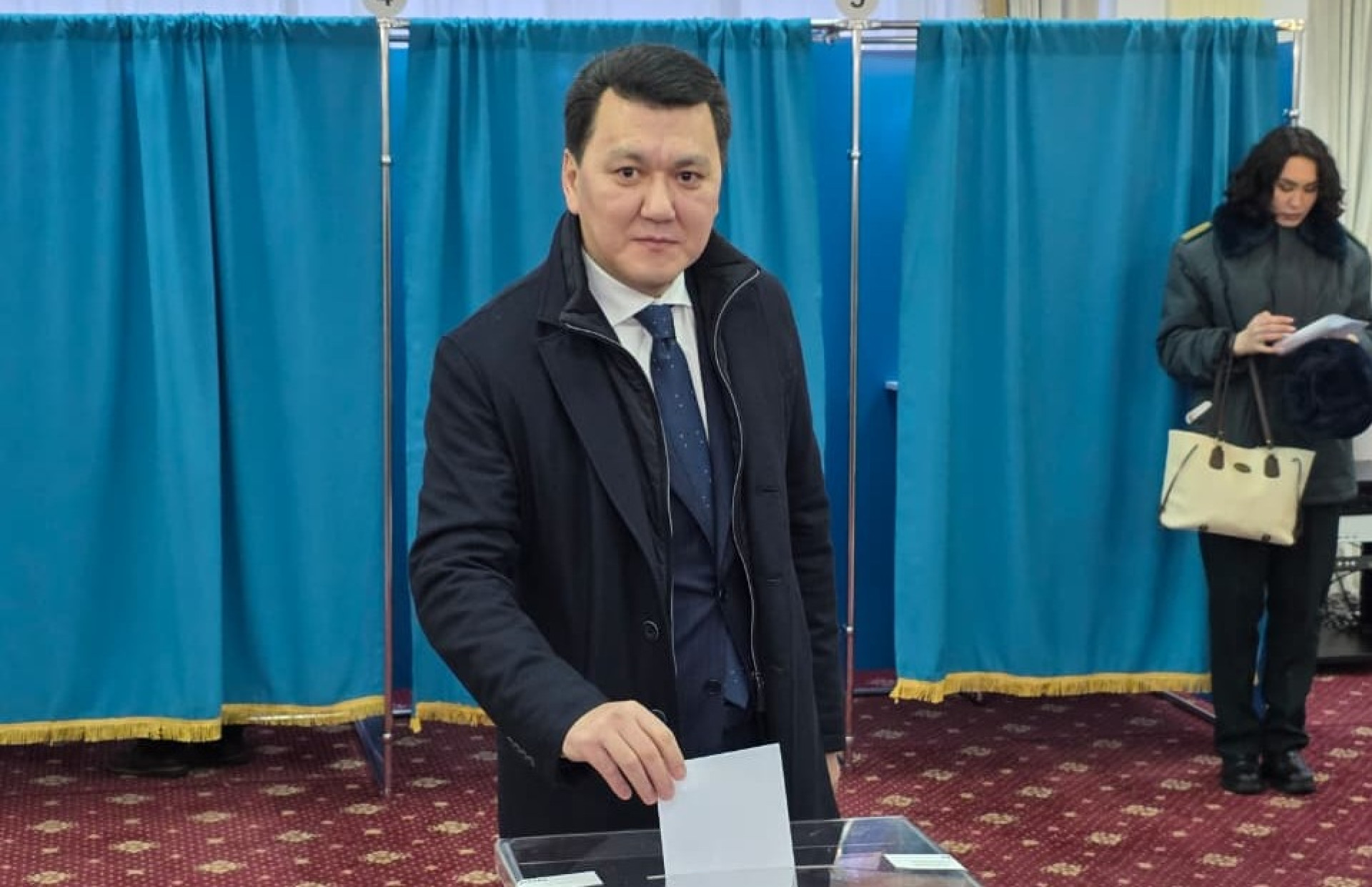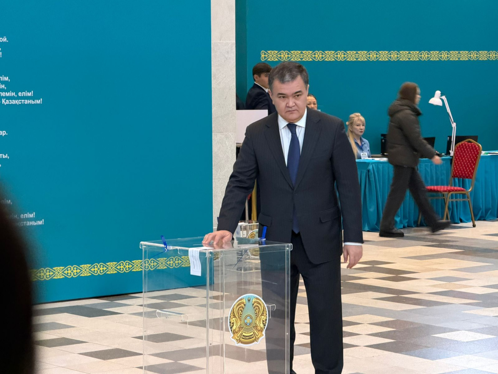 Так же рано свой голос отдал премьер-министр Олжас Бектенов — он пришёл на избирательный участок в школе-лицее № 66 имени Динмухамеда Кунаева.