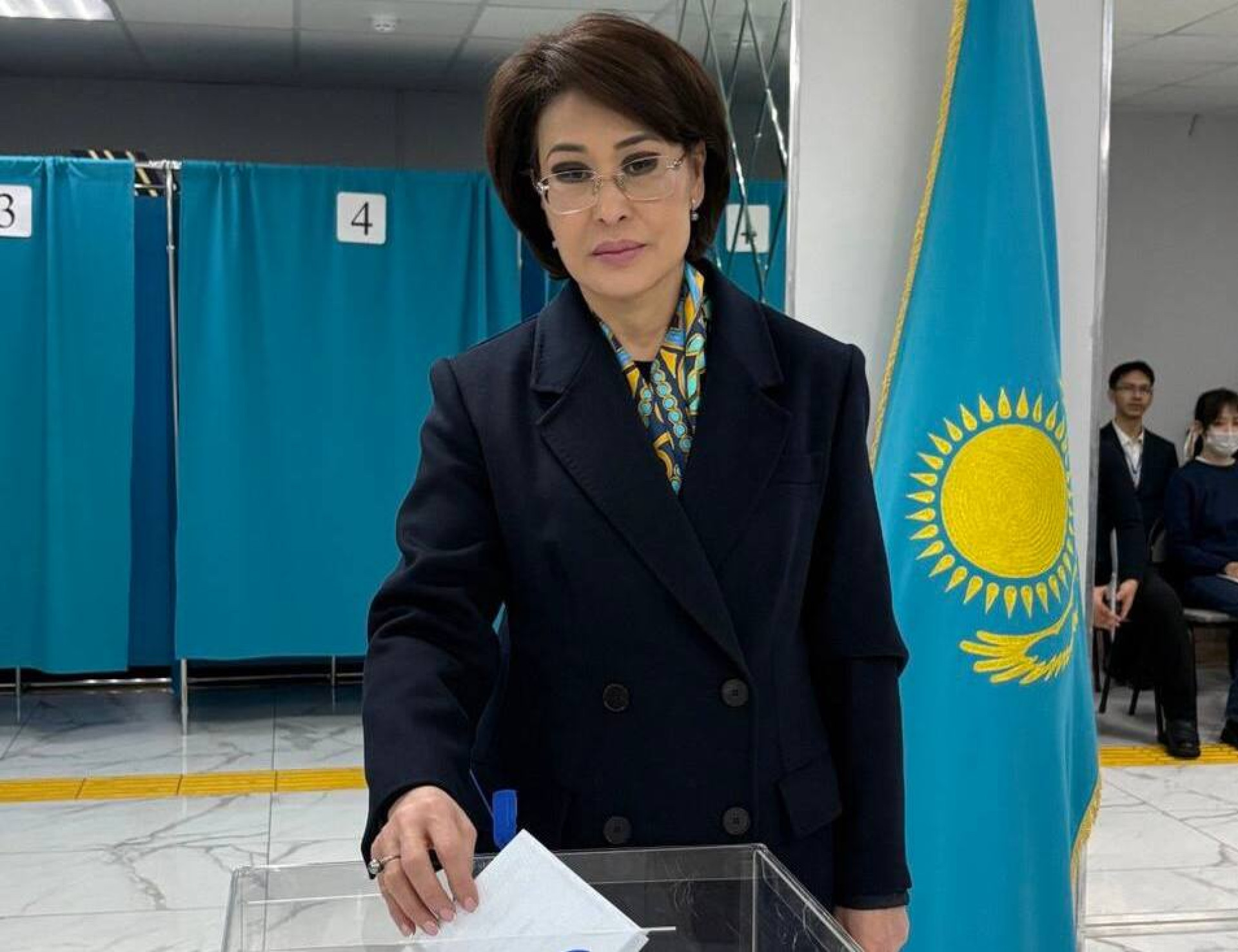 Так же рано свой гражданский долг исполнила министр здравоохранения Акмарал Альназарова.