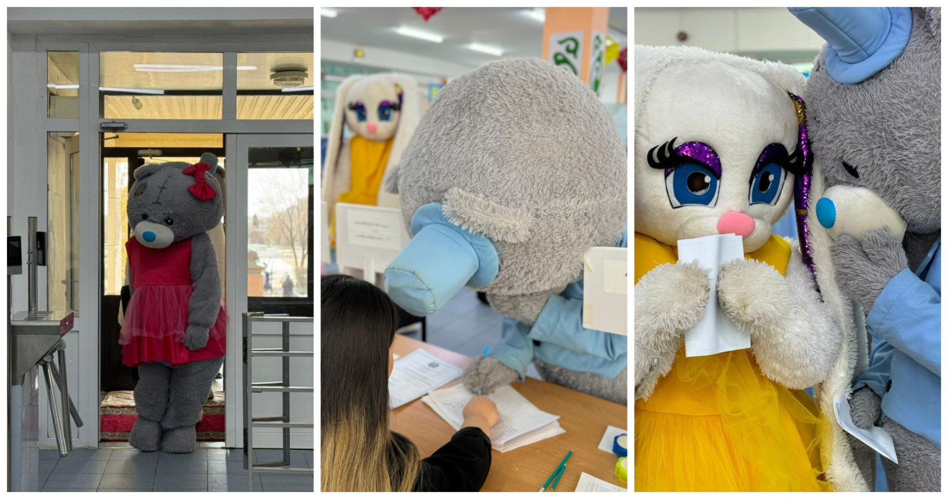 Так вот, на парламентских выборах 10 января 2021 года был как минимум один кейс с людьми в костюмах медведей Тедди в Караганде, которых не пустили на участок, потому что комиссия из-за масок не смогла установить их личности.