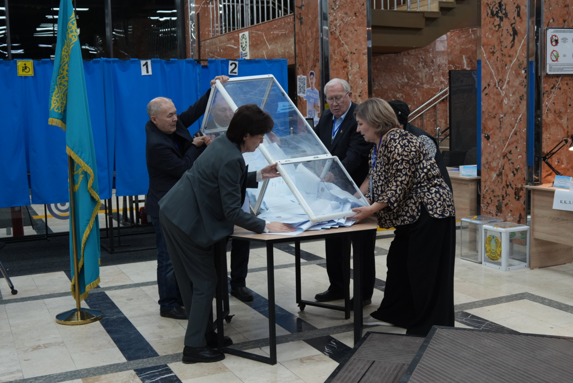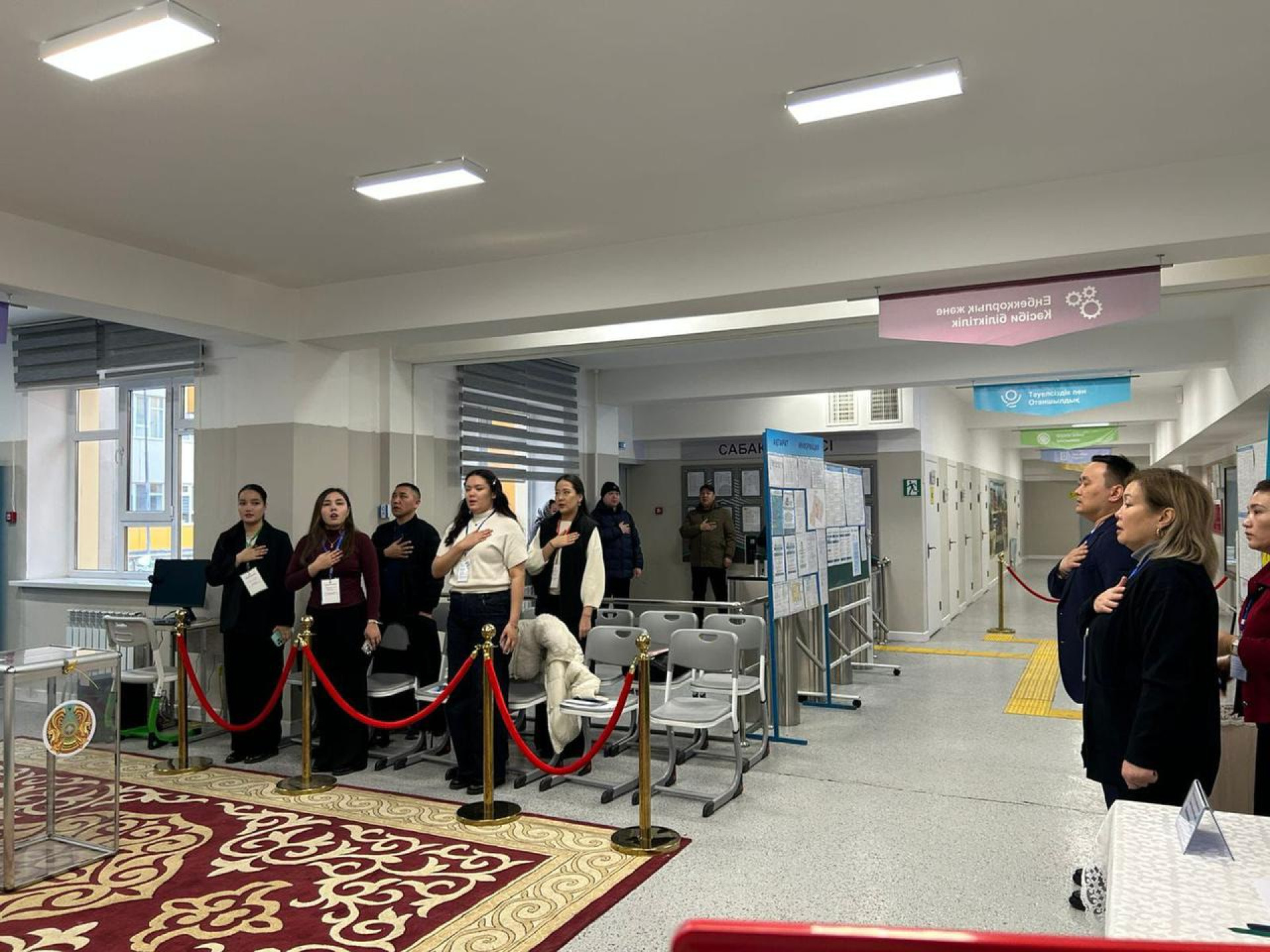 Внутри страны подготовка к референдуму началась за несколько часов до открытия участков. Члены комиссий проверили готовность помещений, наличие бюллетеней и исправность оборудования. Как сообщали наши корреспонденты в Астане, с утра там даже были небольшие очереди из избирателей — некоторые подошли чуть раньше и даже ждали открытия.