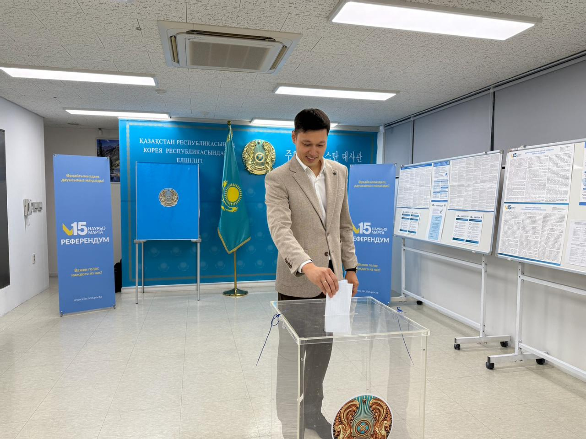 Параллельно, как сообщает МИД, одним из первых на избирательном участке в Сеуле проголосовал казахстанец Ернар Сарсенбаев, сотрудник Азиатской организации по сотрудничеству в области лесного хозяйства (AFoCO).