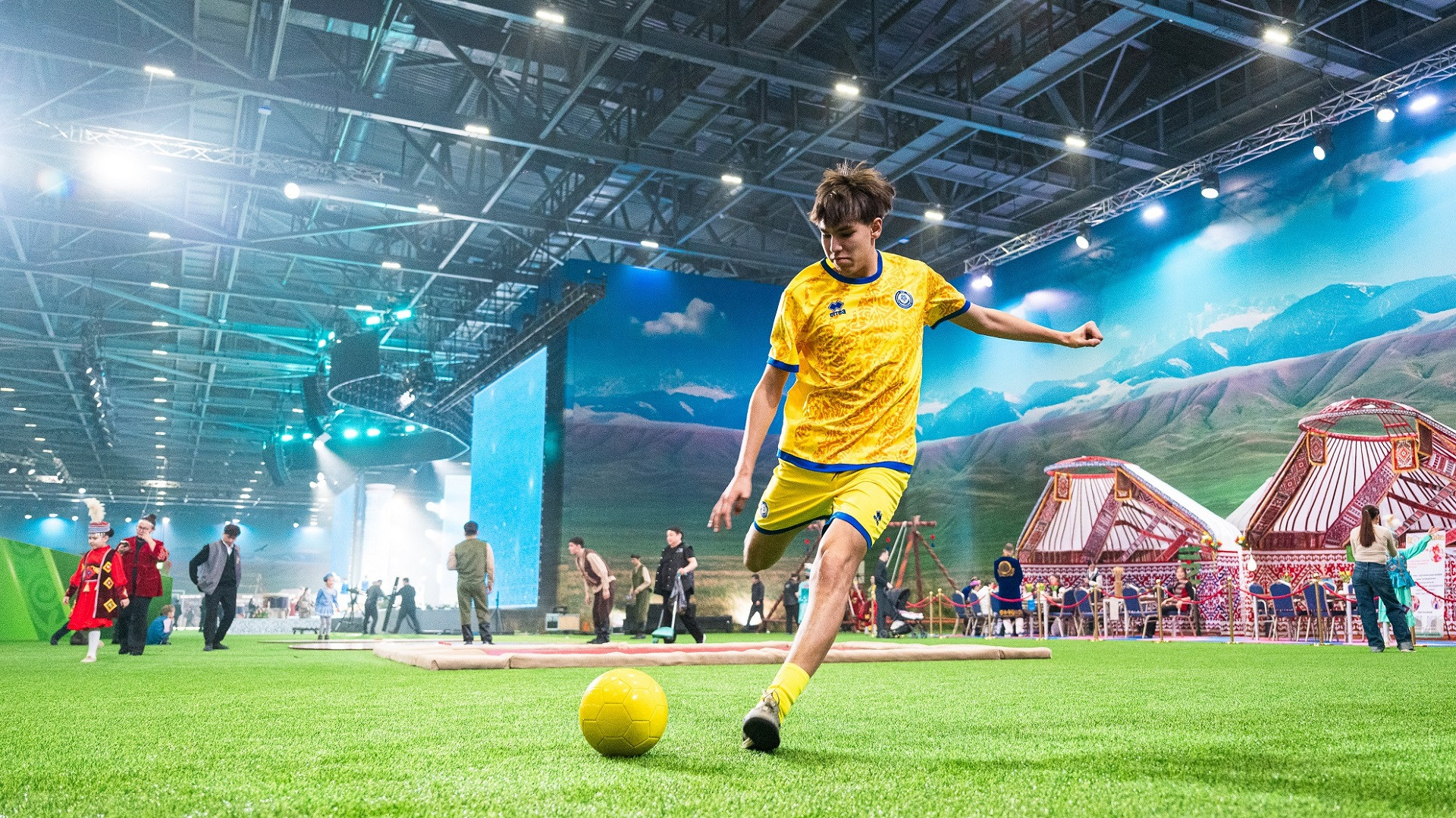 Самая активная зона — AI Sport, где национальные игры адаптированы с использованием технологий. Посетители могут участвовать в цифровых версиях қазақша күрес, асық ату и других активностях.