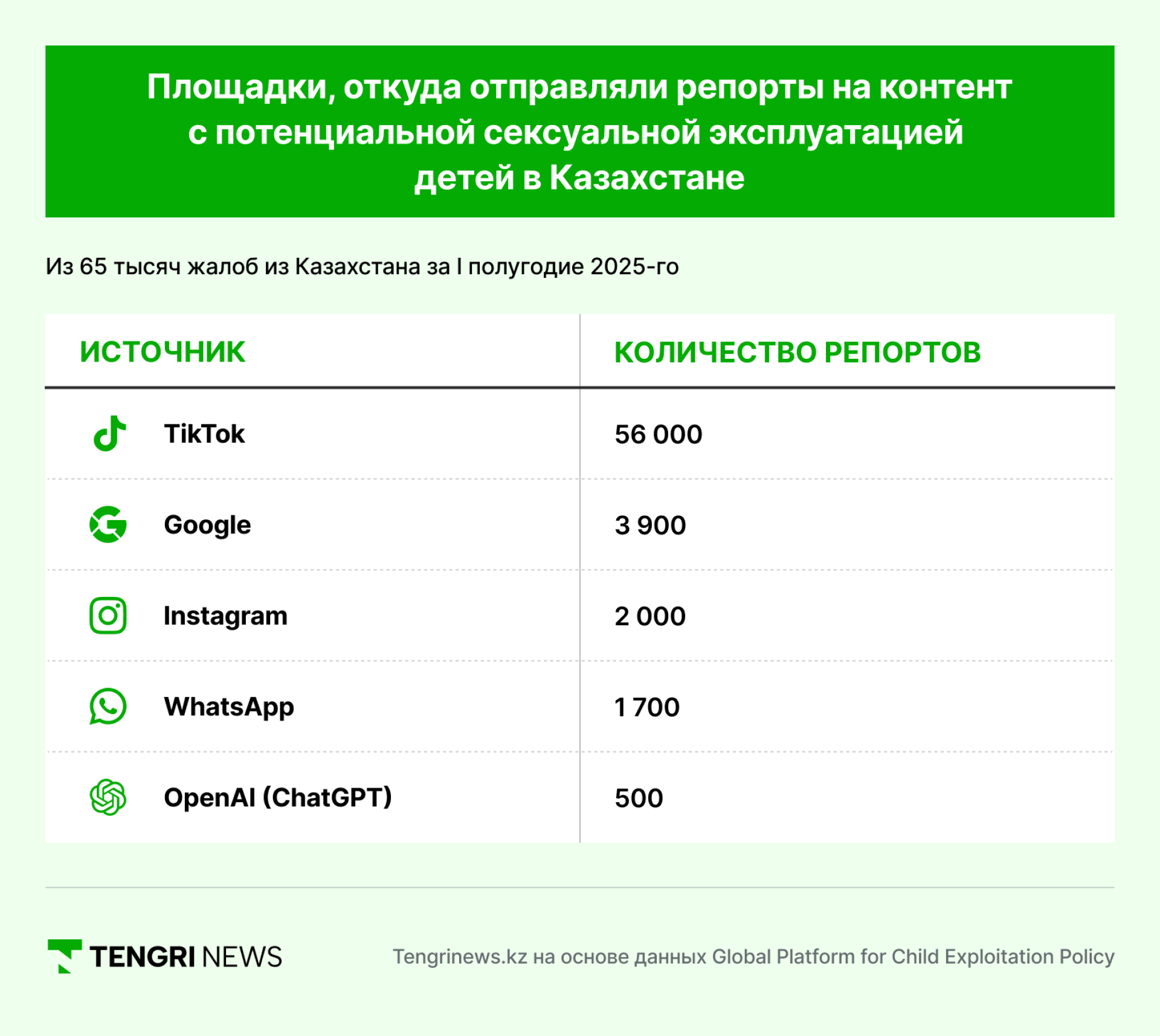 Данные предоставляются NCMEC (американский Национальный центр по делам пропавших и эксплуатируемых детей) представителям федеральных правоохранительных органов США. По Казахстану ни одно государственное ведомство официально не назначено получателем этих данных.